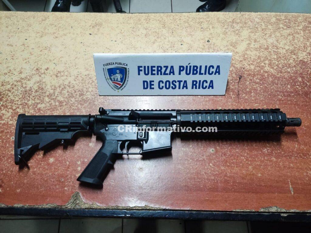 Oficiales de Fuerza Pública destacados en Siquirres, ubicaron la noche de este lunes, un arma larga y cargadores con varias municiones, que fueron tirados en el patio de una casa en barrio Florida, por varios sujetos quienes al notar la presencia policial por el sector se dieron a la fuga.