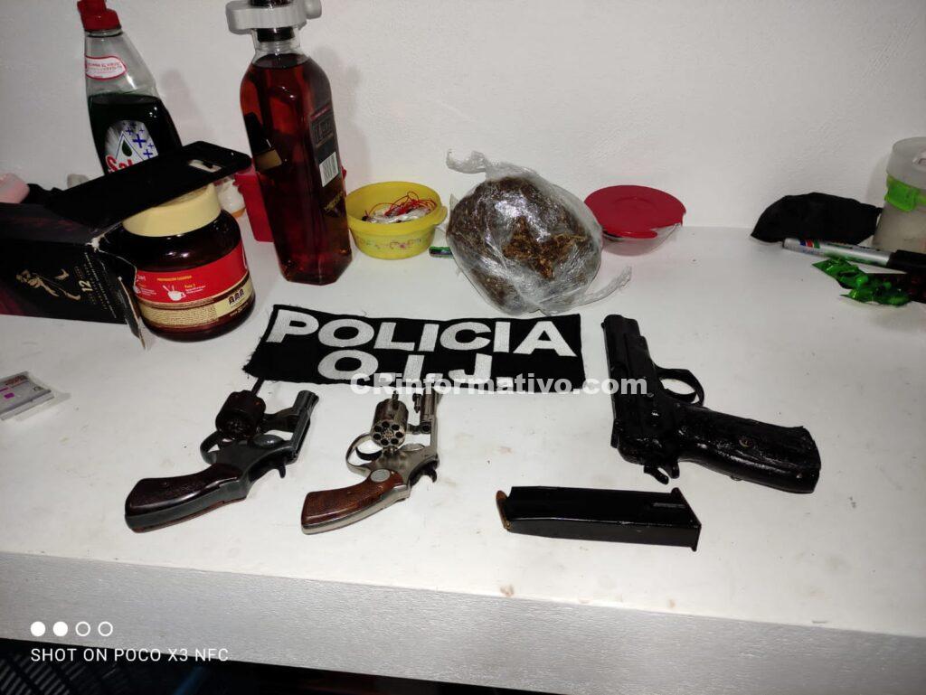 En los allanamientos se logró decomisar marihuana, cocaína, crack, tres armas de fuego dos tipo revolver y una pistola. Cabe indicar que en la revisión realizada por los agentes judiciales en una de la casas allanadas decomisaron tres tortugas en un congelador.