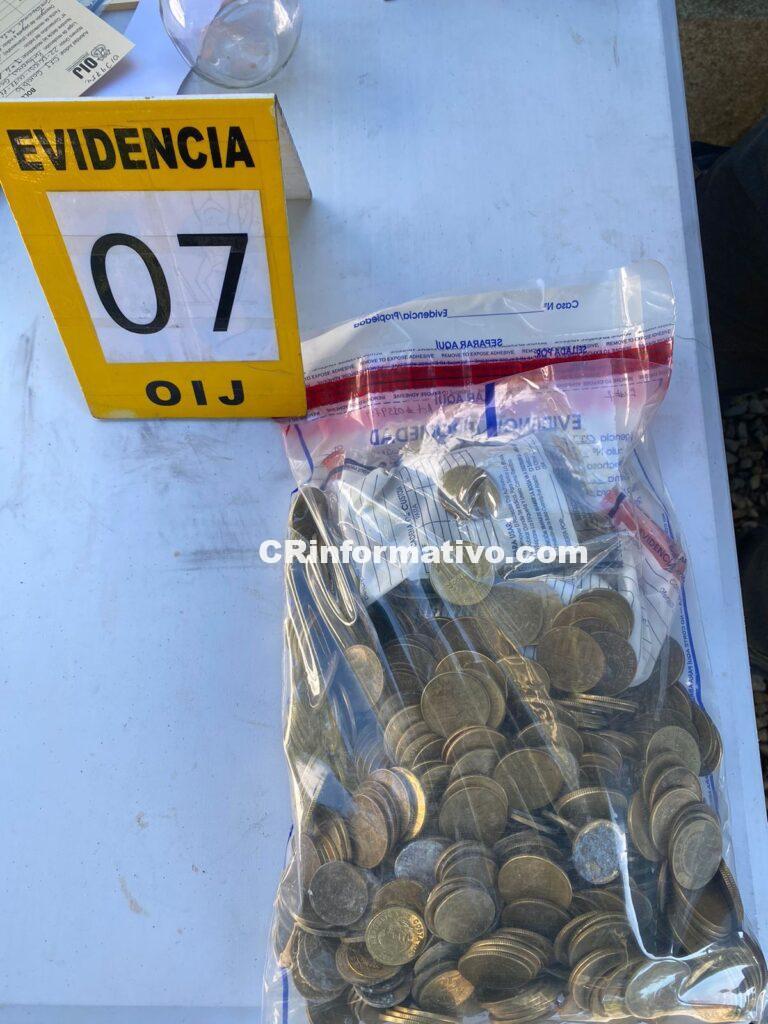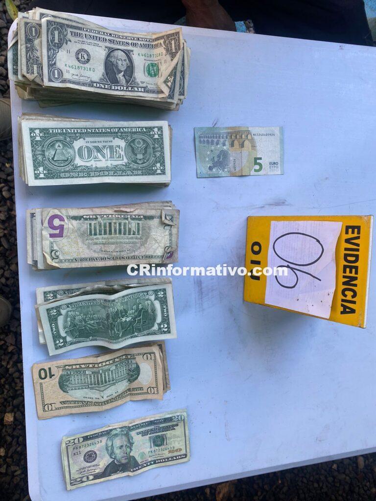 Al ser las 6:00 a.m., los investigadores judiciales allanaron dicha casa, donde además de detener a los sospechosos decomisaron un arma de fuego tipo pistola, más de 600 mil colones dinero en efectivo, 450 dólares, 2 kilos de cocaína, un kilo de marihuana, 48 pastillas de éxtasis, ampollas de clonazepam y fentanilo y 1 onza de crack.