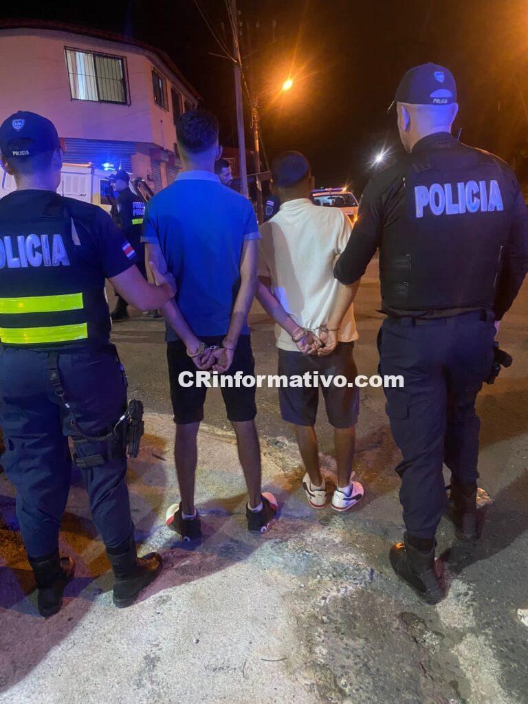 En una rápida respuesta por parte de oficiales de Fuerza Pública destacados en Limón, este jueves se logró detener a dos sujetos sospechosos de participar en una balacera en Cieneguita.