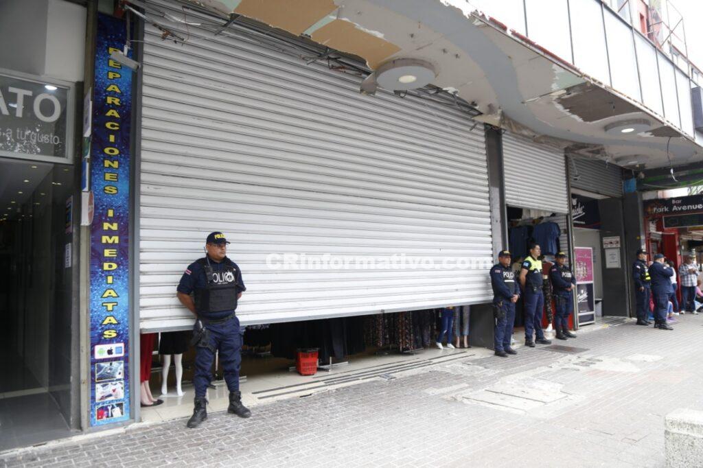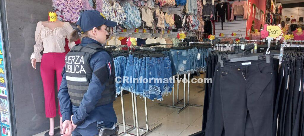 Oficiales de la Fuerza Pública realizaron una intervención policial en al menos18 tiendas ubicadas en el centro de la capital, las cuales presuntamente están relacionadas con aparentes maltratos con el personal que labora ahí.