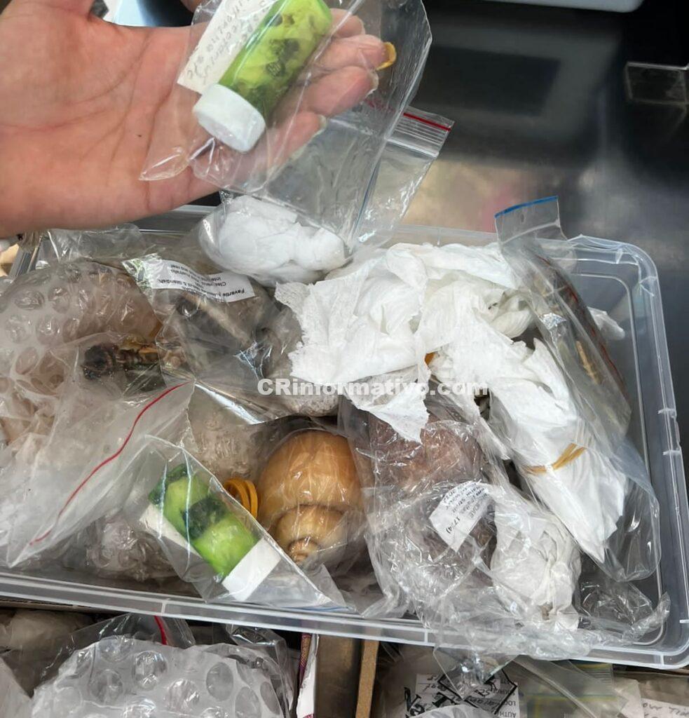 - Se trataba de un pasajero que en apariencia pretendía salir del país con algunos especímenes dentro de sus maletas