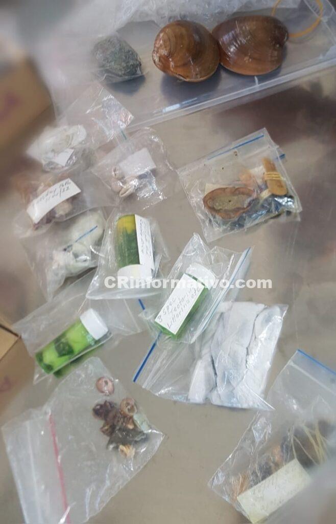 - Oficiales detectaron conchas marinas y envases que contenían lo que perecía moluscos marinos vivos