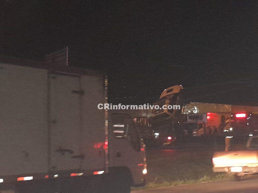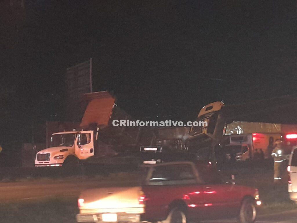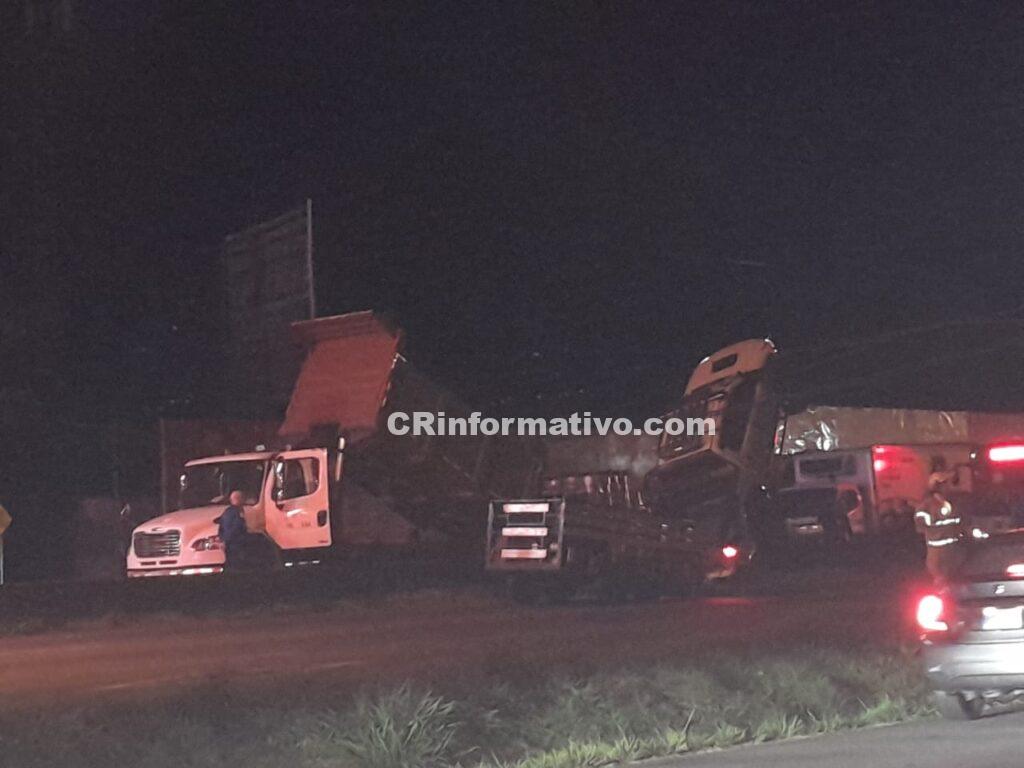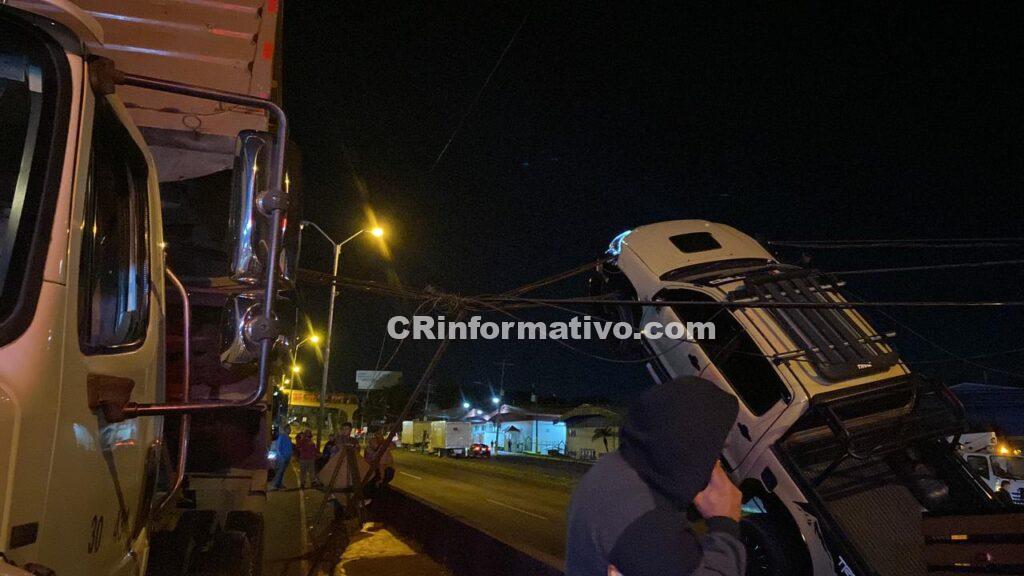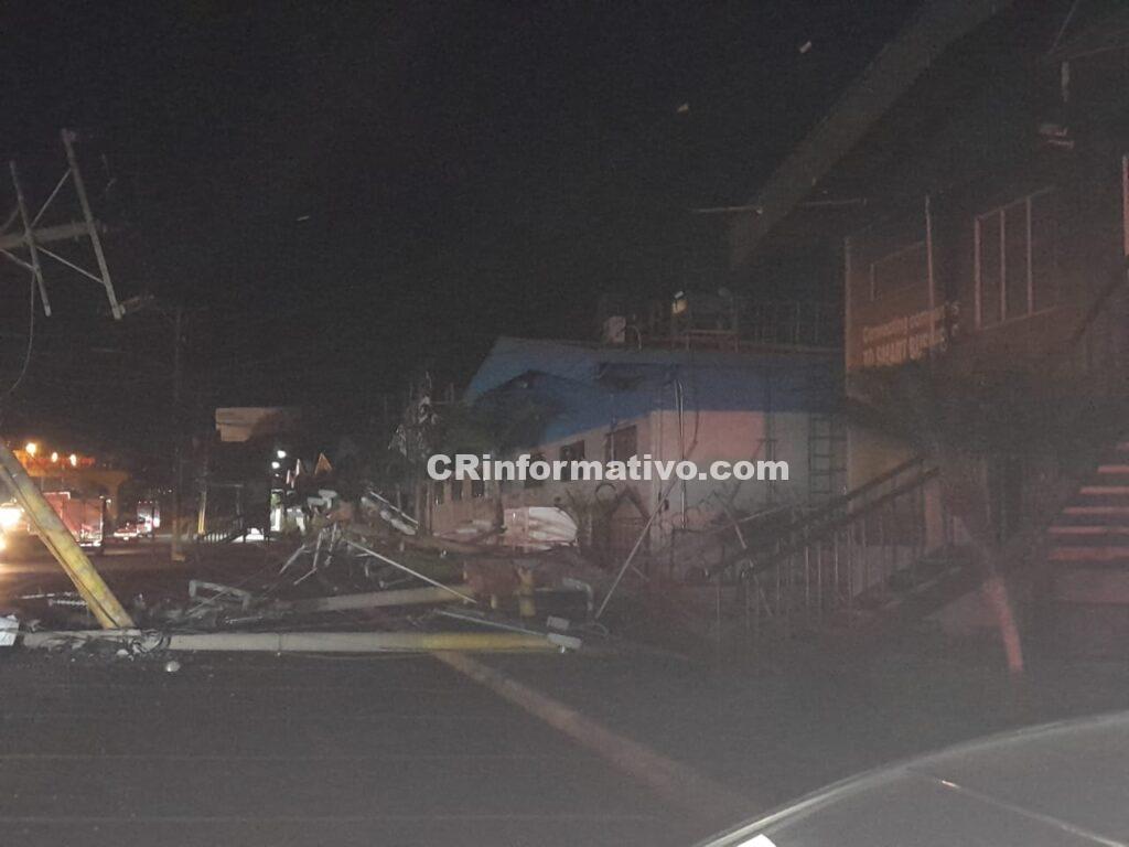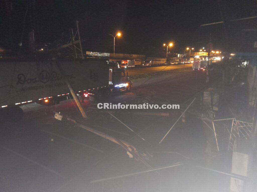 Rio segundo de Alajuela calle paralela a autopista General Cañas ruta 1 sentido Alajuela -San José a eso de las 01:15 de la madrugada vagoneta viajaba por la autoridad con la góndola levantada por lo que se pasa llevando dos postes de luz y deja varios postes en vía pública , sobre la calle paralela en estos momento no hay paso por la paralela y tampoco energía eléctrica.