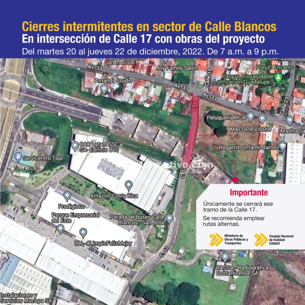 Se aclara que el paso para acceder a RACSA o la empresa Amazon, que se ubican en ese sector, no será restringido, los cierres se aplicarán sobre Calle 17 únicamente donde se cruza con el proyecto (ver imagen adjunta).