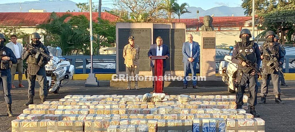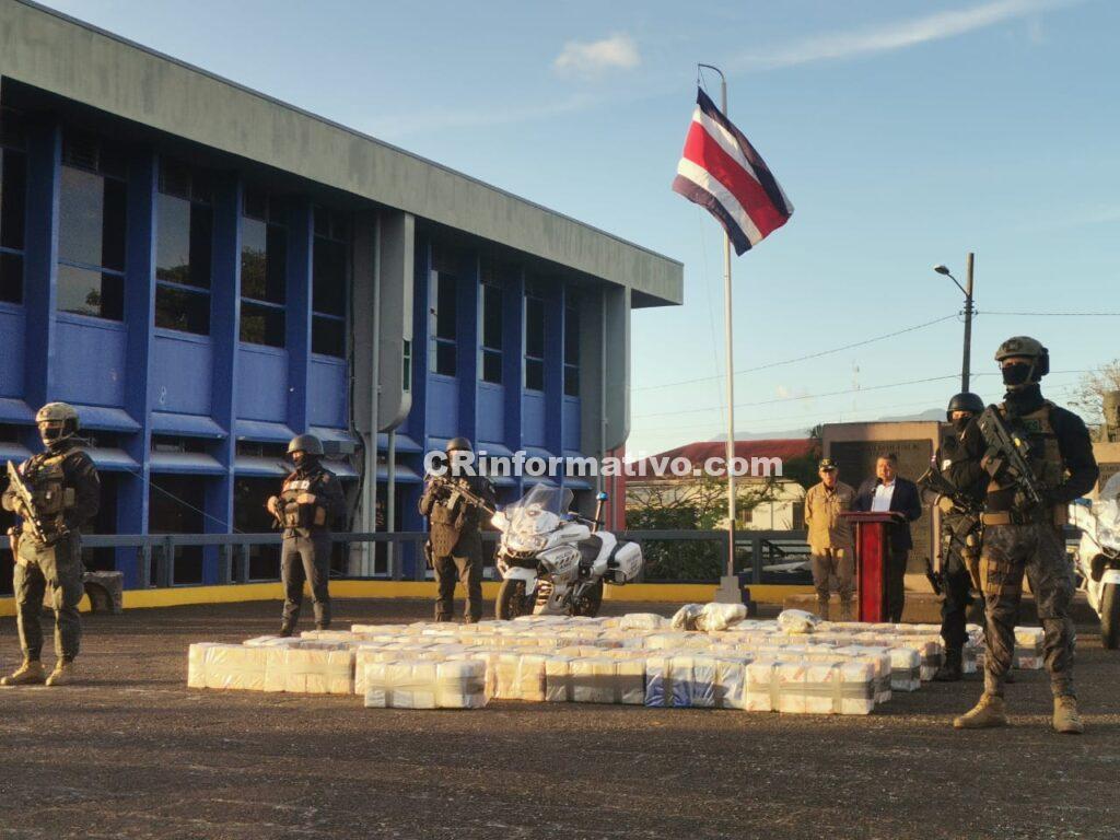 Una vez asegurada la escena, el Servicio de Vigilancia Aérea realizó un sobrevuelo en la zona para brindar seguridad y, bajo la dirección funcional de la Fiscalía de Limón, el Guardacostas trasladó la nave, su cargamento y los cinco detenidos hasta Portete, Limón.