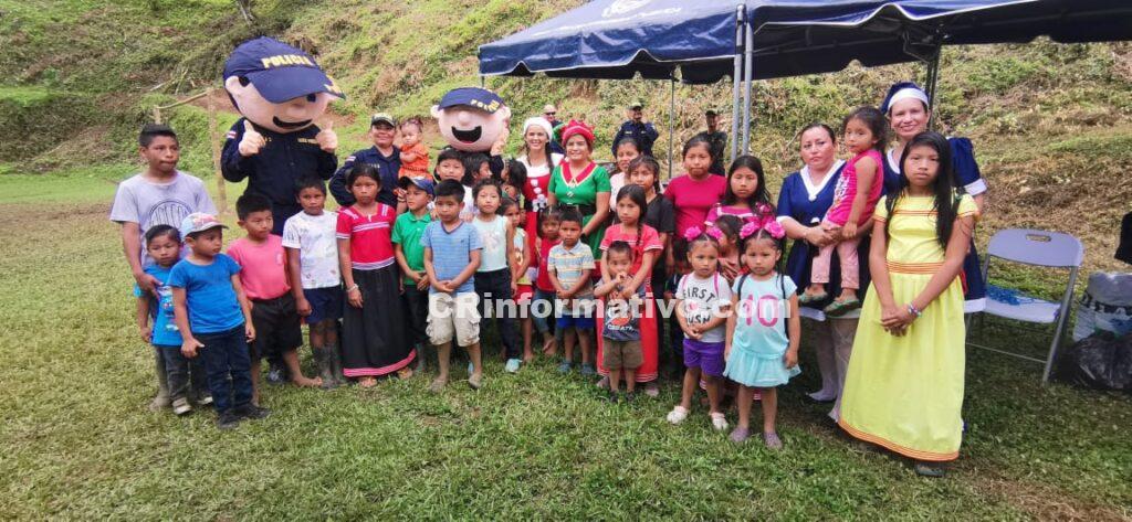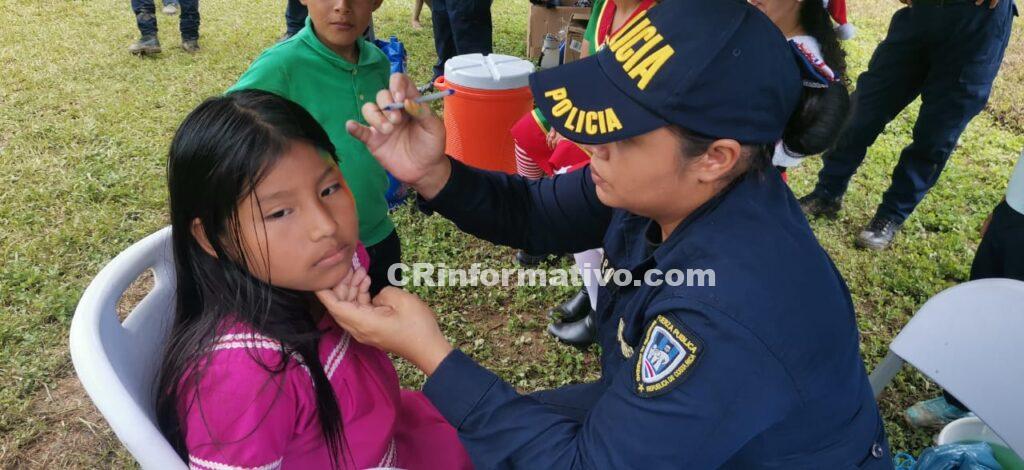 Policías y personal médico se unieron para que niños y niñas indígenas ngöbe disfrutaran fiesta navideña.