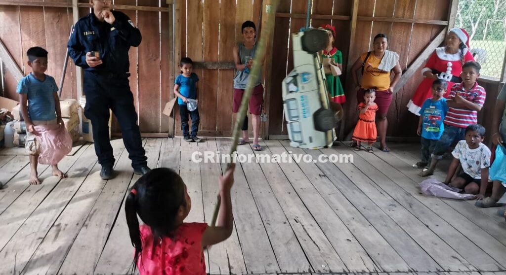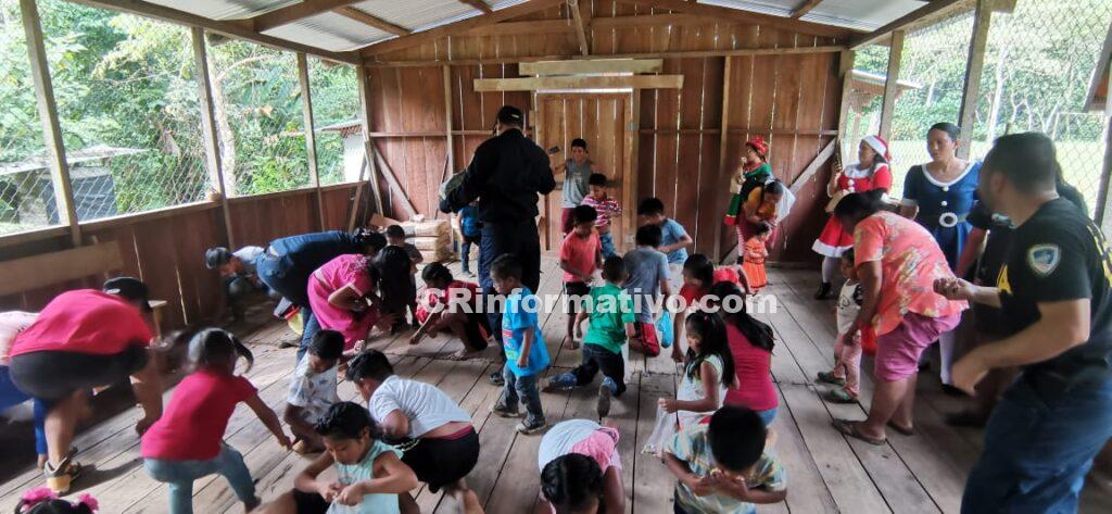 Como parte del acercamiento de la Fuerza Pública a las comunidades indígenas, más de 50 niños y niñas de la etnia ngöbe pudieron disfrutar de una fiesta navideña.