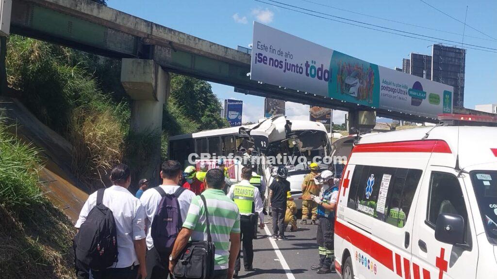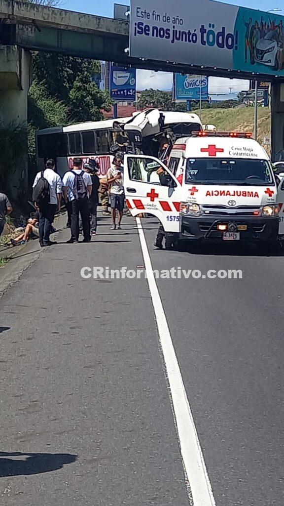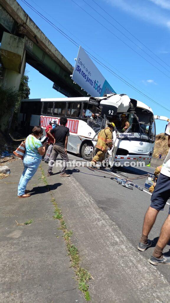 hace algunos minutos se de una colisión de bus contr objeto fijo , unidade de Cruz roja se encuentra en el sitio , en apariencia se encuentran dos personas prensada.