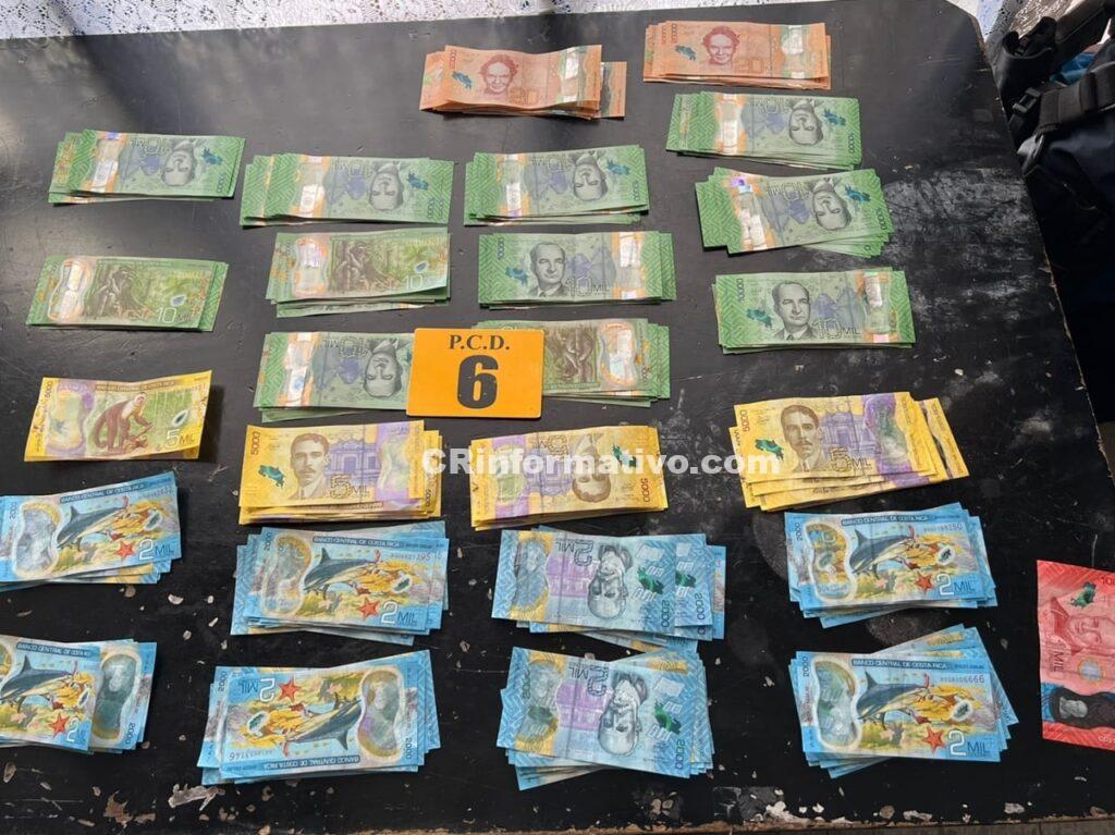 Fuerza Pública aprehende a dos sujetos, decomisa 1.8 millones de colones y droga