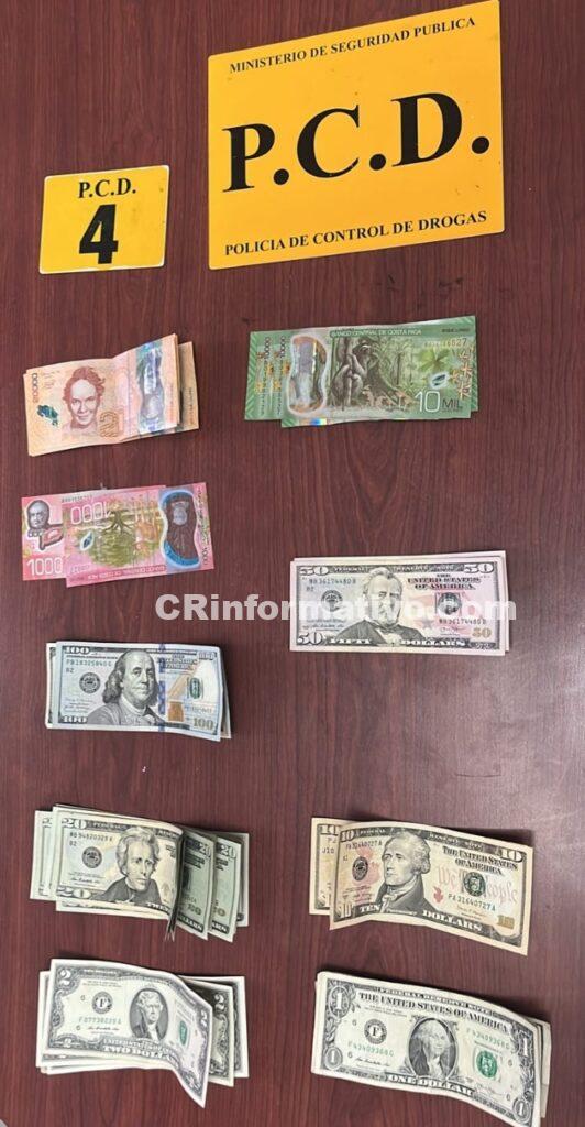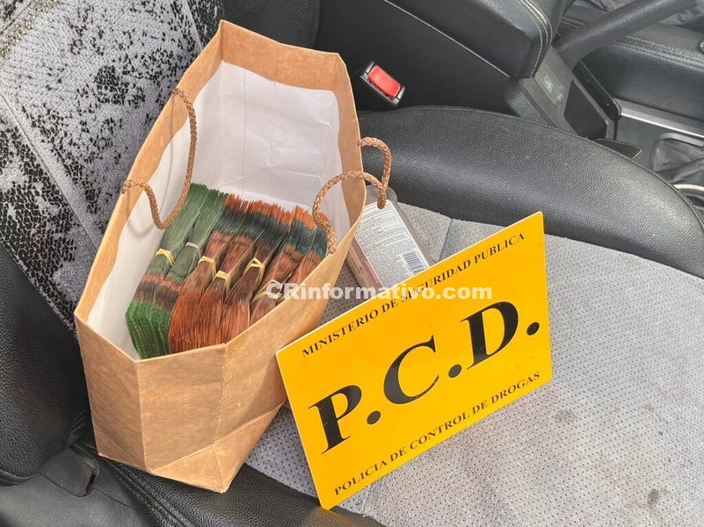 En tanto, tras las pesquisas de la PCD se indicó que el total de dinero decomisado fue de 17.054.975,00 colones y 1.113 dólares, a lo que se suma la incautación del vehículo que era conducido por el ahora detenido al que el Juzgado le impuso tres meses de prisión preventiva como medida solicitada por la Fiscalía.