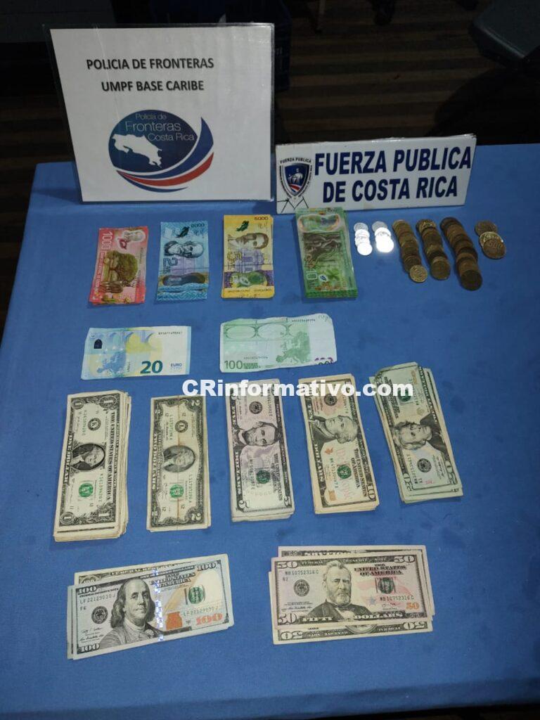 De esta forma los miembros de la Policía de Fronteras y la Fuerza Pública encontraron unas bolsas plásticas con aparente marihuana y posible cocaina, además de gran cantidad de dinero entre dólares, euros y colones.
