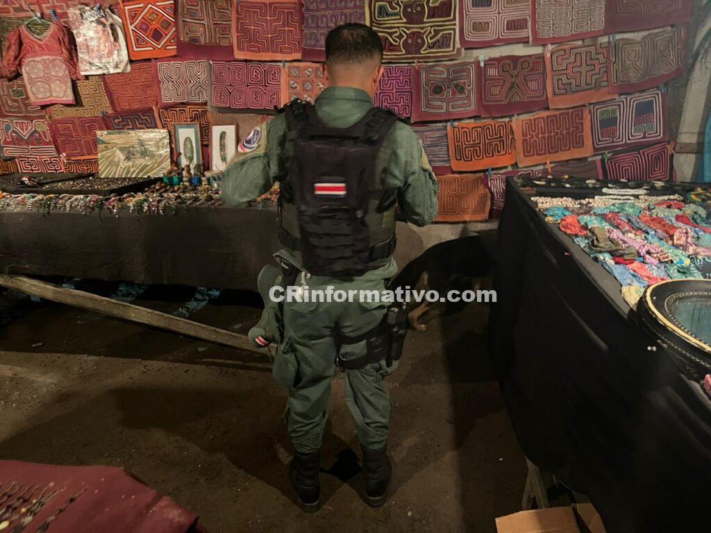 Los oficiales del Ministerio de Seguridad Pública, tras recibir información acerca de que en un kiosco del centro de Puerto Viejo estaban vendiendo drogas, realizaron una inspección del local, el cual es un sitio totalmente abierto.