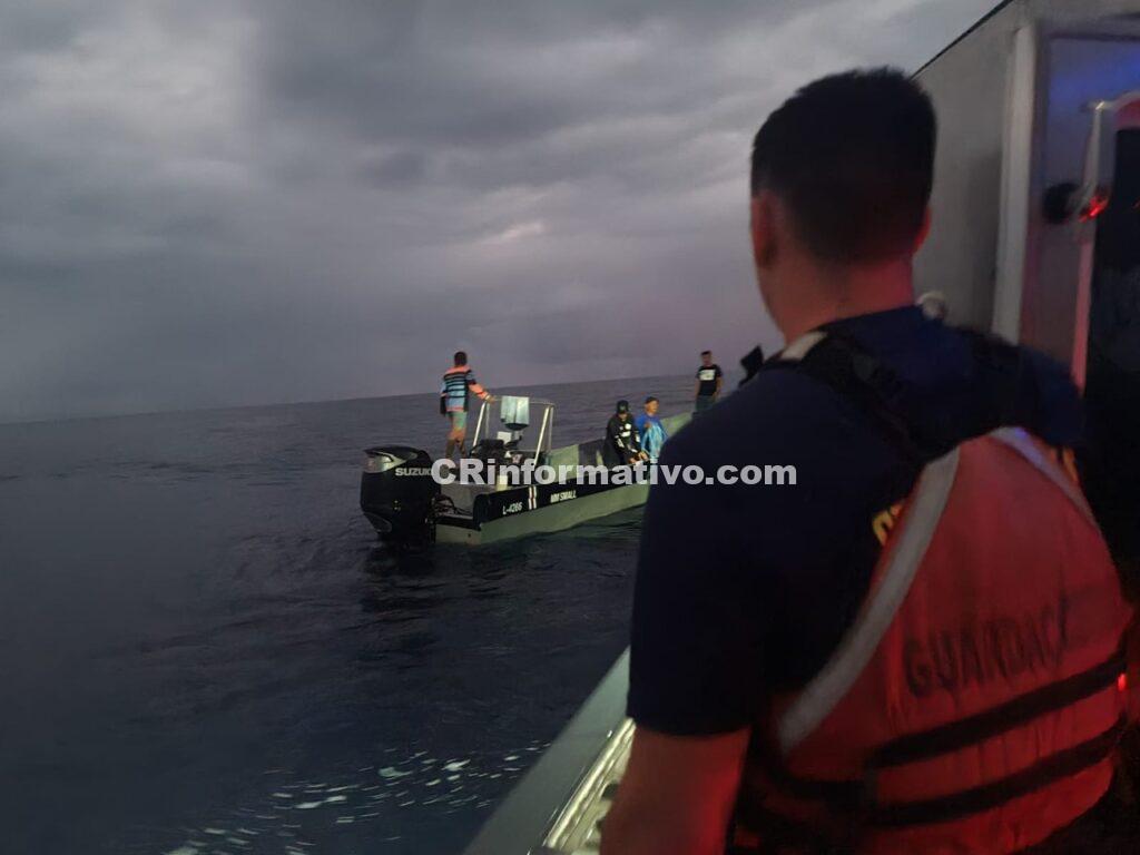 De inmediato la lancha interceptora inició el remolque de la panga con los pescadores a bordo, quienes fueron llevados sanos y salvos a las 7:40 de la noche hasta Moín, donde los estaba esperando una embarcación de nombre Kymani XVI matrícula L-4024 para llevarlos hasta el interior de la bocana de Moín.