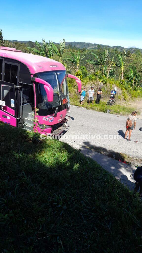 Este domingo se da una fuerte colisión entre una motocicleta y un autobus de Tracopa entre Valle Azul y Sabalito, Puntarenas.