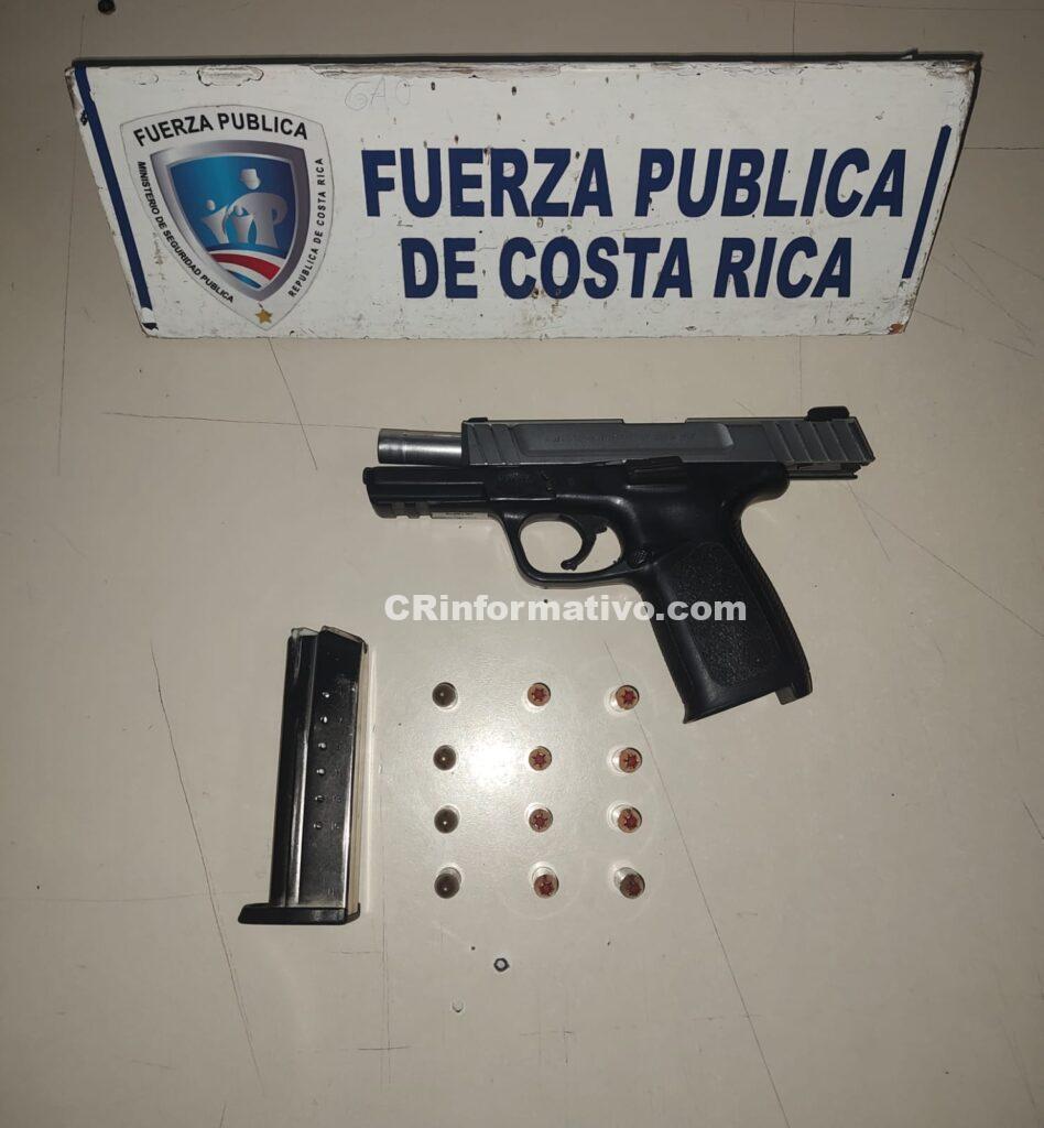 En el distrito de Pavas, San José, los policías abordaron a un hombre que viajaba con dos mujeres a bordo de un vehículo, en la revisión del mismo, no se encontró nada anómalo. Sin embargo, los oficiales realizaron una revisión en la zona perimetral a la detención y ubicaron un bolso con dos armas de fuego, las cuales fueron decomisadas.