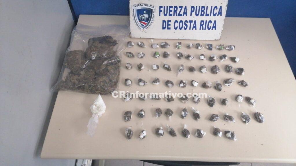 En la Ciudadela Rossiter Carballo, ubicada en el distrito de la Uruca, San José, oficiales de la fuerza Pública lograron el arresto de un joven de apellido Rodríguez, el cual portaba 68 dosis y 348 gramos de marihuana, y 25 gramos de aparente cocaína.
