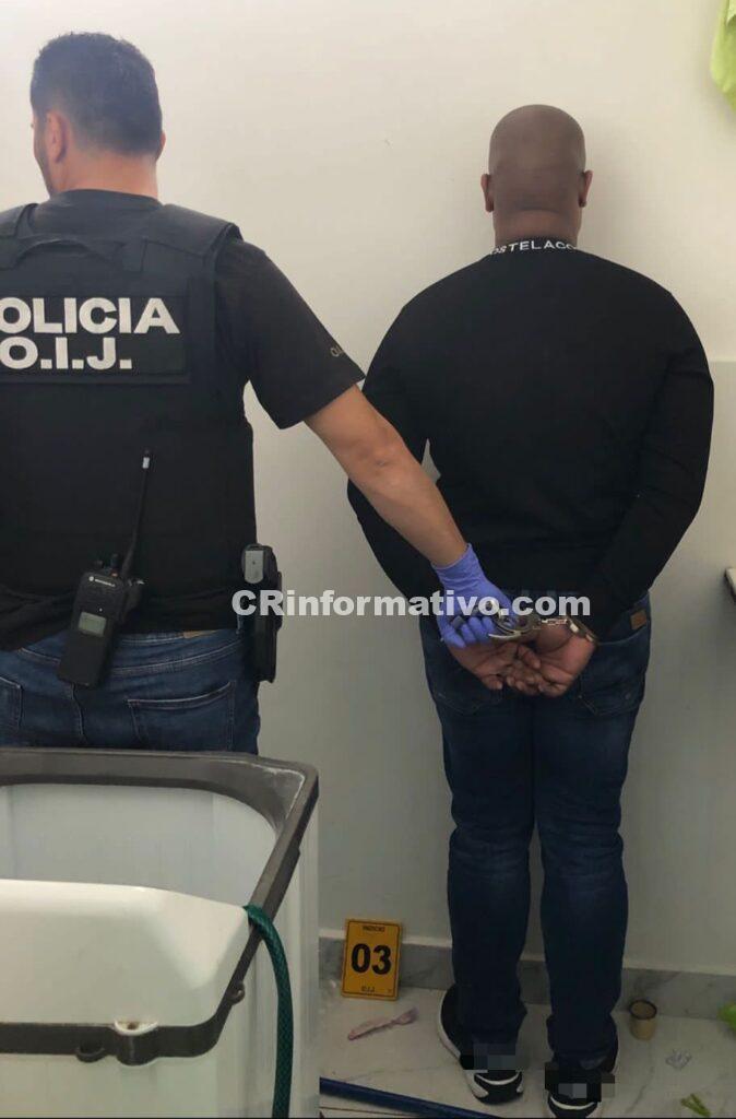 Agentes judiciales destacados en la Sección de Estupefacientes, detuvieron esta mañana en un allanamiento a una soda y casa de habitación (mismo sitio), en el sector de Merced en San José, a dos personas, donde se identificó a una femenina con el apellido González de 35 años, nicaragüense y un masculino con el apellido Albert de 40 años, colombiano, quienes figuran como sospechosos del delito de infracción a Ley de Psicotrópicos.