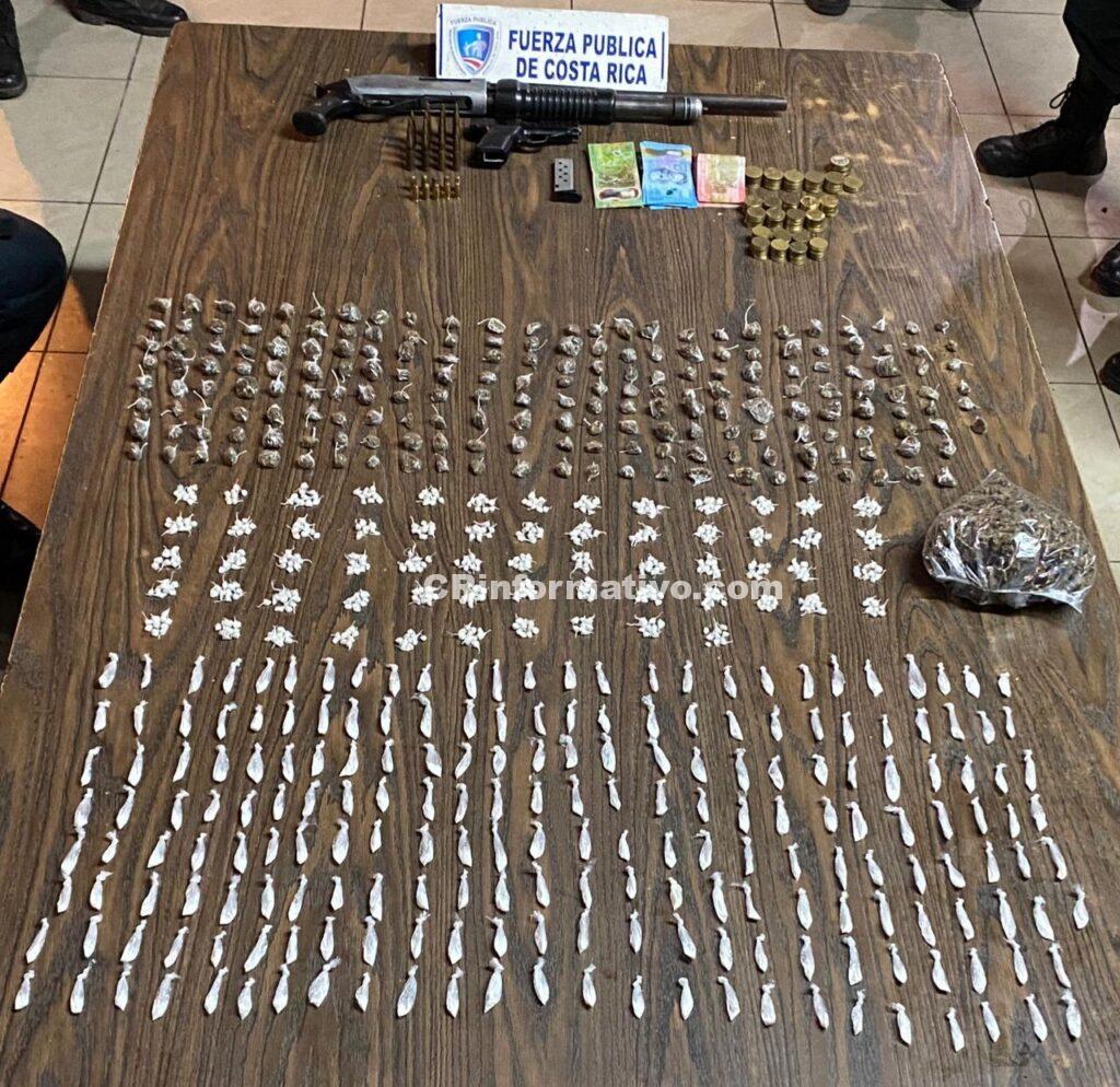 Oficiales del Grupo de Apoyo Operacional (GAO), de la Fuerza Pública de San José, lograron este lunes el decomiso de 6 armas de fuego y una importante cantidad de drogas como parte de las operaciones policiales que se llevan a cabo en todo el país para combatir el narcotráfico local.
