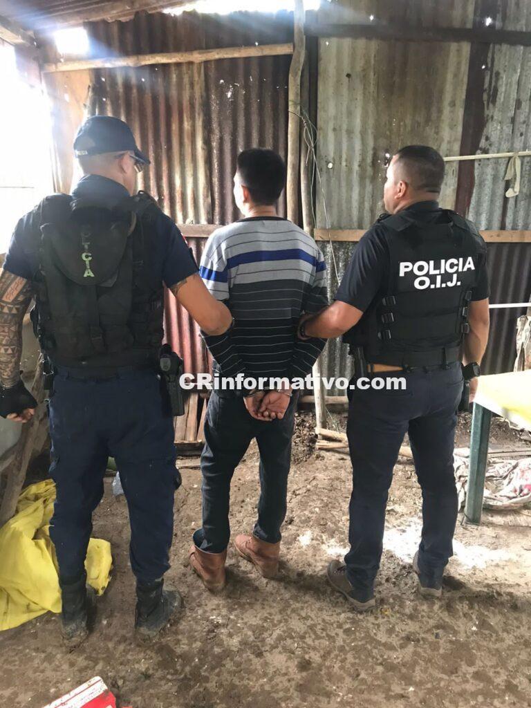 Mediante el allanamiento a una vivienda en el sector de barrio Achiotal de Los Chiles, los agentes del Organismo de Investigación Judicial destacados en la Oficina Regional de Los Chiles, con colaboración de la Policía Administrativa detuvieron esta mañana a un hombre de 27 años, quien figura como sospechoso de Venta y Distribución de droga.