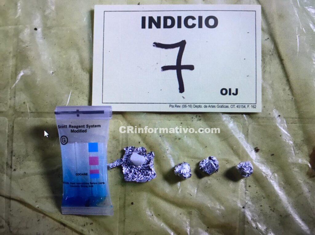 Luego de la ejecución de varias labores policiales, al ser las 6:00 a.m., de hoy, los investigadores del OIJ de Los Chiles allanaron la vivienda del sospechoso dónde además de detenerlo, le decomisaron varias dosis de crack, varias dosis de marihuana, así como 145600 colones y 196 dólares de dinero en efectivo, que se presume es producto de las ventas ilícitas.