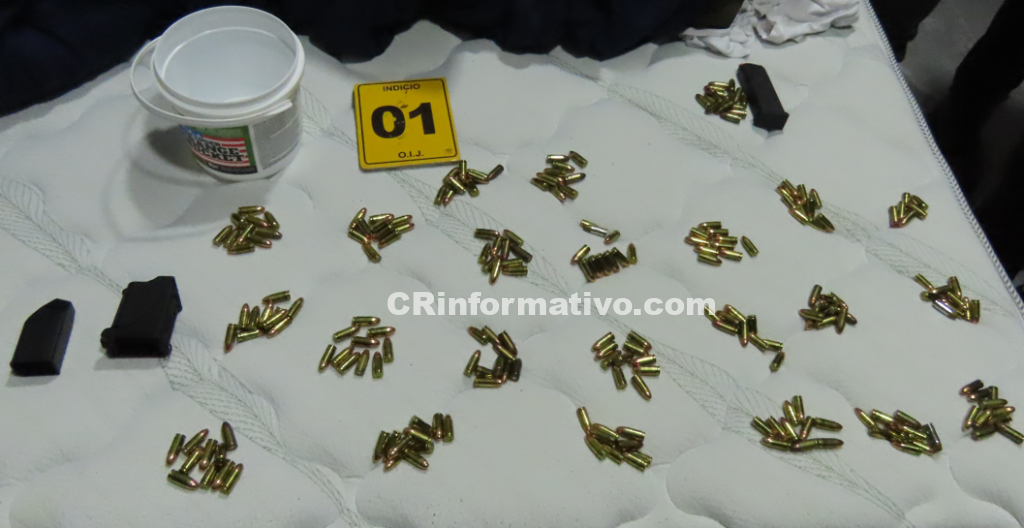 Al momento de la detención los agentes ubicaron tres armas de fuego tipo pistola y una bolsa con aparente droga tipo cocaína, las cuales en apariencia dejaron tiradas estos masculinos. Posteriormente, los agentes judiciales allanaron la vivienda de donde salieron los sospechosos, logrando el decomiso de una pistola más, así como dos millones de colones en efectivo, teléfonos celulares, más de 300 municiones para arma de fuego y tres carros 4×4 uno de ellos con placas hondureñas y el cual aparentemente no contaba con los respectivos permisos para transitar en el país. Además, en uno de estos carros ubicaron un compartimento oculto en el dash, en el que se ubicó un cargador para arma de fuego.