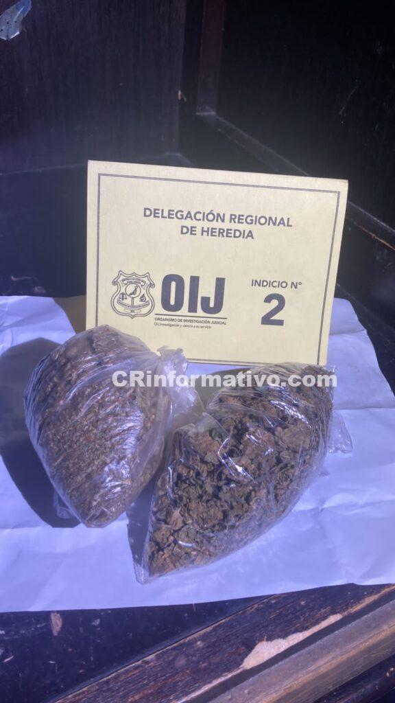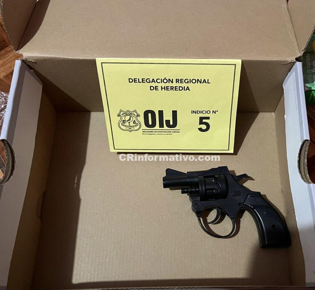 Los agentes del OIJ de Heredia, por medio de varias diligencias policiales, lograron identificar a este menor como sospechoso de participar en los dos asaltos, por lo que al ser las 6:00 de esta mañana, allanaron dos viviendas en San Rafael de Heredia, donde además de detener al sospechoso, decomisaron teléfonos celulares, droga tipo marihuana y un arma de fuego de juguete.