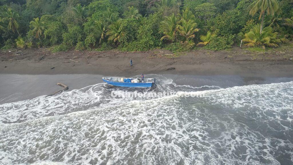 Esto permitió que los pilotos del helicóptero de Seguridad Pública, lograran ubicarla encallada en Boca Tortuguero, sin sus ocupantes, los cuales se dieron a la fuga.