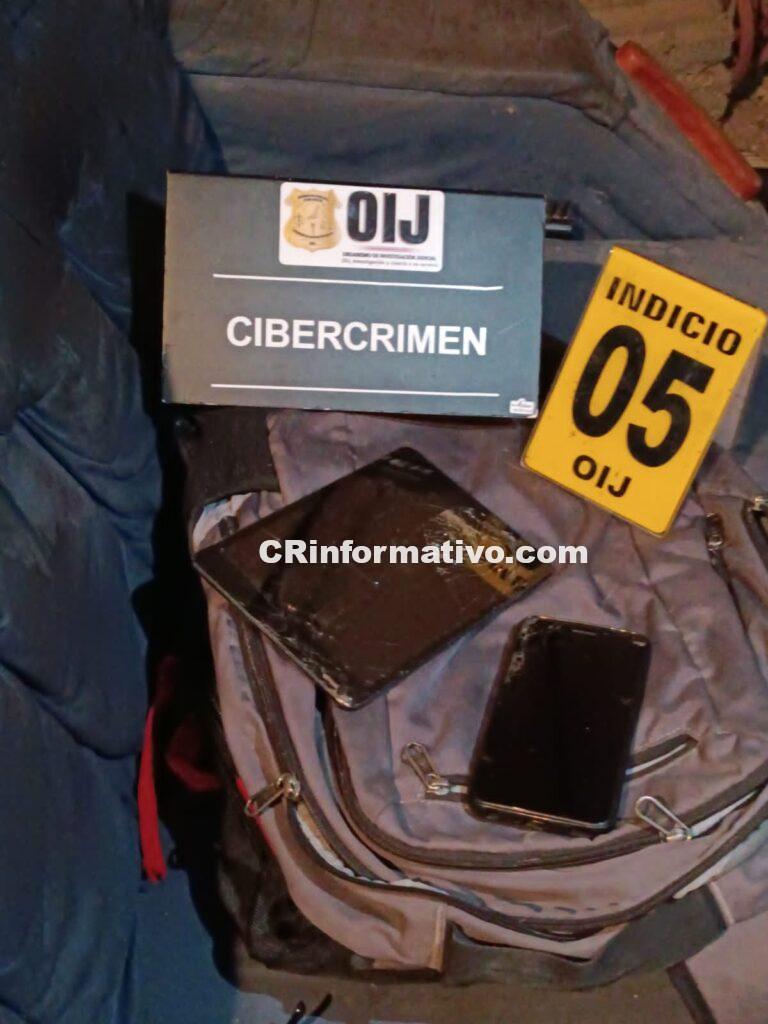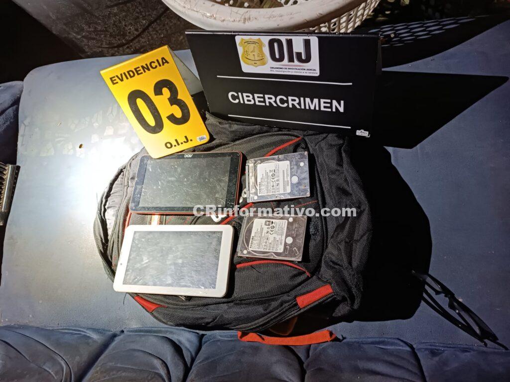 Dicho allanamiento lo realizaron al ser las 4:00 a.m., de hoy en el sector de Pérez Zeledón, donde además de detenerlo, le decomisaron teléfonos celulares, dispositivos de almacenamiento y una computadora, estos indicios electrónicos serán sometidos al respectivo análisis e investigación forense.