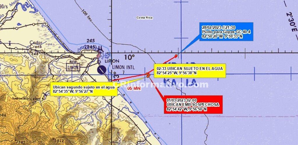 De acuerdo con lo informado por el comisario Martín Arias, Viceministro de Seguridad Pública, a las 2 de la madrugada de hoy oficiales del Grupo de Operaciones Especiales (GOPES) del Servicio Nacional de Guardacostas se encontraban en labores de patrullaje en aguas cercanas al puerto de Limón.