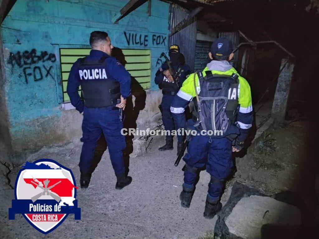 Oficiales de la Fuerza Pública de Zapote realizan incursión en Precario Las Rosas, lugar donde días anteriores falleció un menor de edad a causa de una pelea por territorios para la venta de drogas.