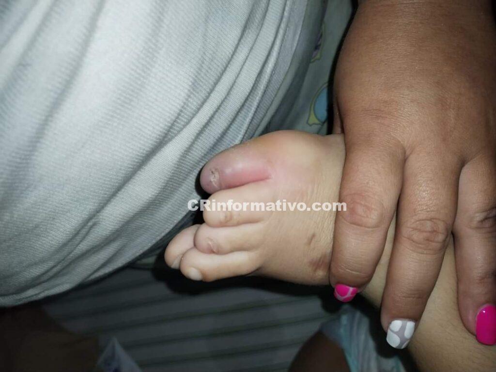 Hace 1 mes Luka empezó con fiebres de 40, ese día cuando lo sentí decidí darle una cataflam bañarlo para bajarle la fiebre, tipo 7 de la noche, cuando le estaba poniendo la pijama vi su pie muy hinchado, el día siguiente día domingo, decidí llevarlo a la clínica cuando la Dra lo vio me dijo q seguro era un golpe, a lo que yo le dije q tenía una ulcera y ella me dijo le ah supurado algo? Yo le dije q no y ella solo me dijo entonces ni hay de que preocuparse, seguro fue un golpe, no me dio ni acetaminofén, yo me lo lleve a mi casa, siguió todo el día con fiebre, el día lunes lo vuelvo a llevar y ella me vuelve a decir lo mismo, ya molesta, yo le digo q el tiene el dedo pequeño y el pie mas hinchado y morado y ella me dice q mientras la úlcera no surpure no hay peligro.
