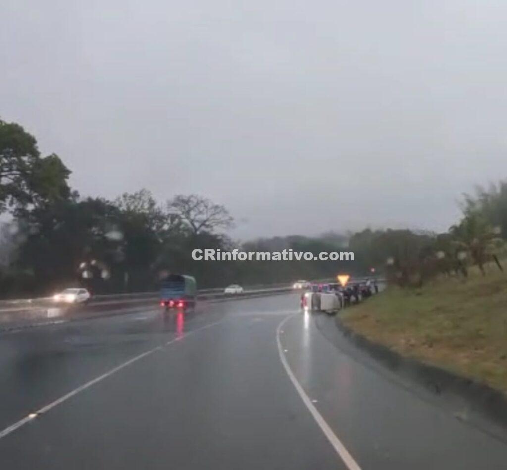 Se reporta el vuelco de una buseta en el sector de Río Grande, unos 700 metros después del peaje en dirección hacía San José.