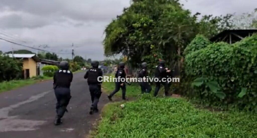 Así lo informó el director de la PCD, señor Stephen Madden, quien indicó que “la Policía Control de Drogas está allanando cuatro estructuras que están siendo utilizadas como búnker en La Rita de Pococí. Detenidas cinco personas investigadas por el delito de venta de drogas, además dentro de esta investigación logramos determinar que una de las personas está utilizando a uno de sus hijos de aproximadamente doce años de edad.