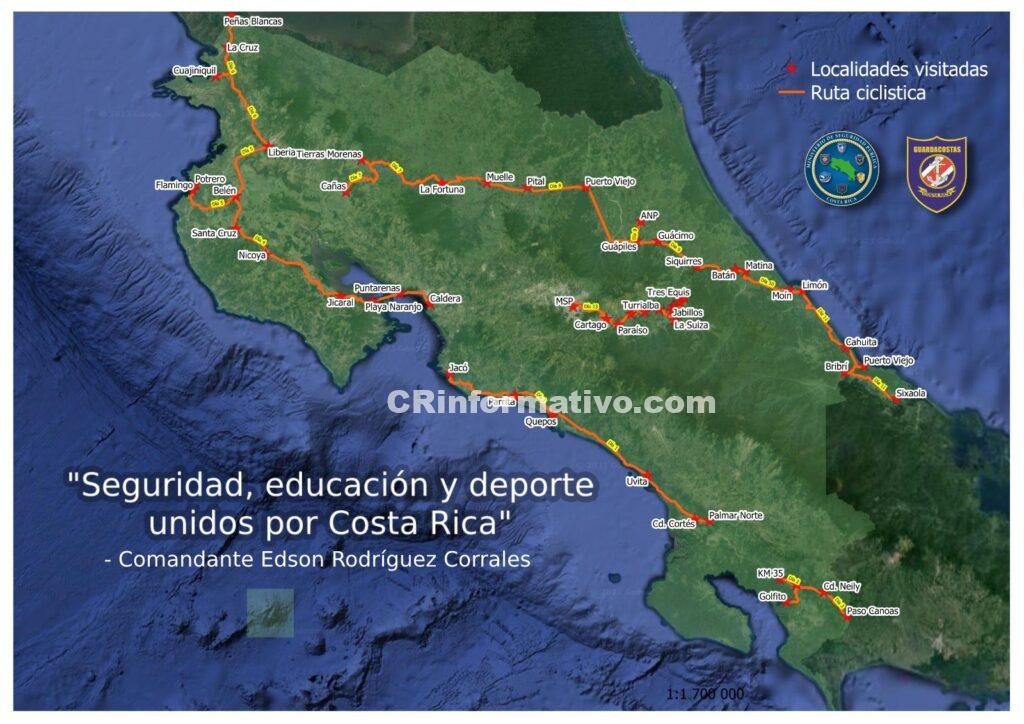 “Seguridad, educación y deporte, unidos por Costa Rica”; ese el mensaje que el director de la Academia del Servicio Nacional de Guardacostas, comandante Edson Rodríguez, llevará durante sus vacaciones en un recorrido que realizará en bicicleta, con el único objetivo de transmitir un mensaje de solidaridad y paz, además de impulsar el deporte en las comunidades.