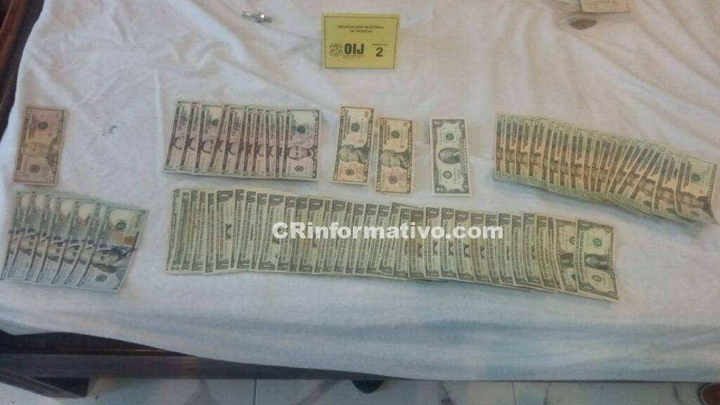 La detención se realizó tras allanar dos viviendas, una en Tres Ríos y otra Alajuelita; donde también se logró el decomiso de importante evidencia para la investigación, como dinero efectivo y teléfonos celulares