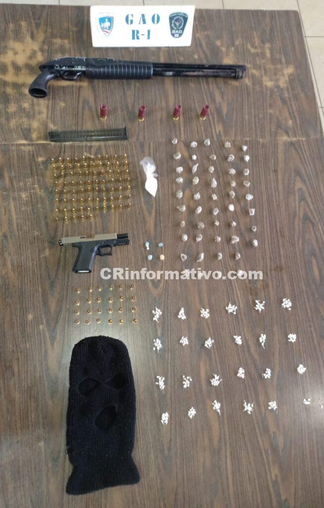 En Barrio Cuba, San José, el GAO intervino un búnker, varios sujetos huyeron al ver los uniformados, en el techo de la estructura los policías encontraron una escopeta, un arma de fuego, 235 dosis de crack, 18 gramos de pasta de cocaína, 50 dosis de marihuana y 24 municiones.
