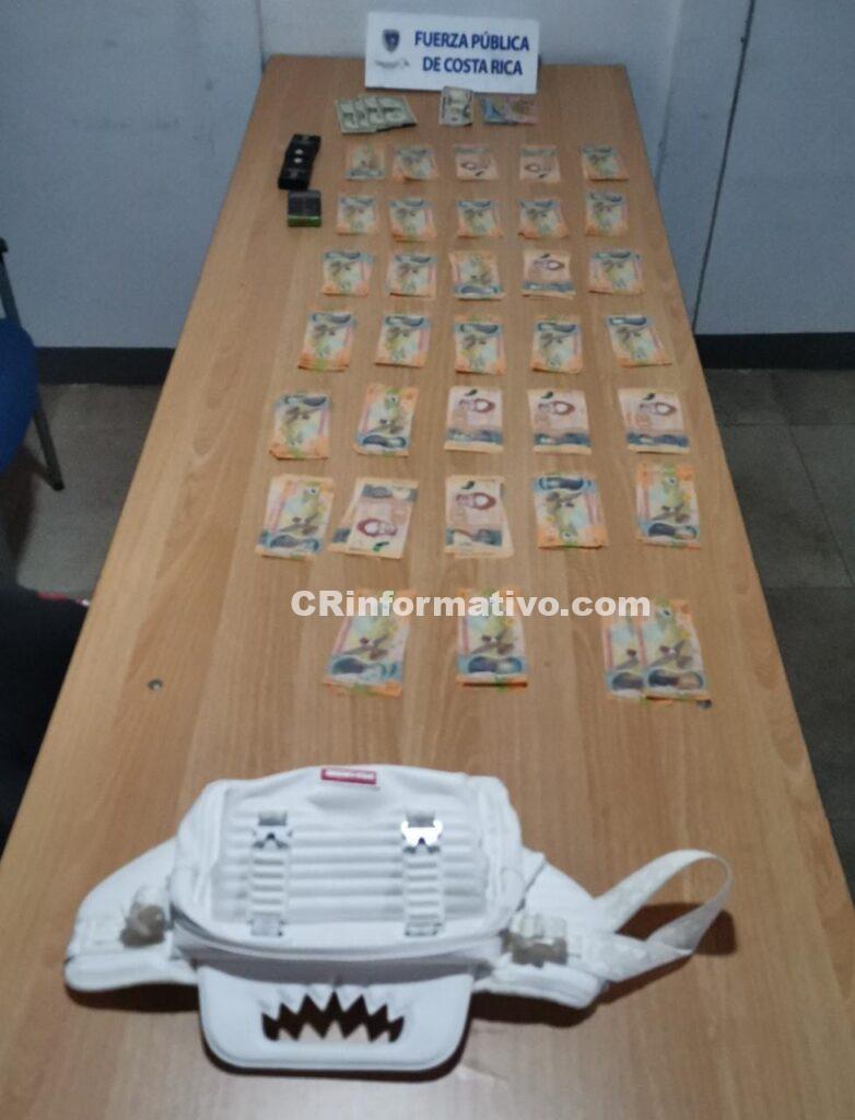 El hombre que lo portaba es un colombiano de apellido Argüelles, con antecedentes por portación ilegal de arma permitida, se le decomisó un total de 3 millones 240 mil colones y 53 dólares.