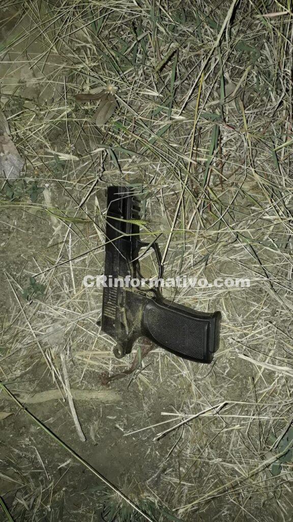 Al sitio se desplazaron los oficiales de la Fuerza Pública local a cargo de la unidad policial 3474, quienes lograron ubicar, en las proximidades del lugar de los hechos, a un costarricense de apellido Loáiciga, quien se había ocultado, cerca del cual las autoridades encontraron una pistola calibre 9 m.m.