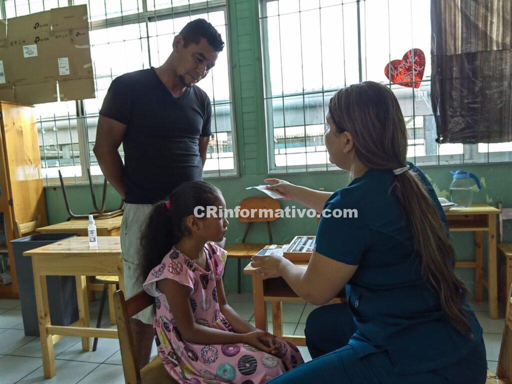 Desde las 8 de la mañana empezaron a llegar niños acompañados de sus padres procedentes desde diversas comunidades para formar parte de esta atención. Una buseta trasladó un grupo importante de niños desde Nueva Cinchona hasta la escuela Mario Salazar Mora.