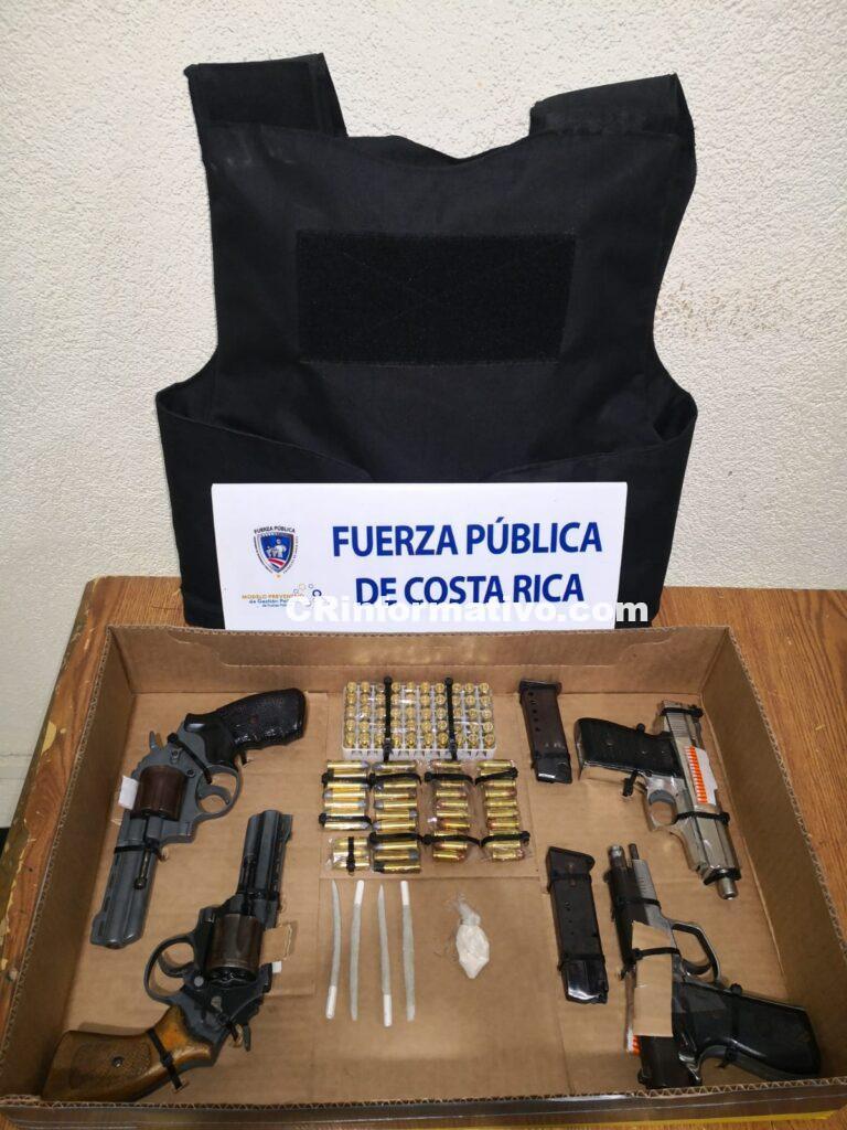Ayer, en horas de la tarde, oficiales de la Fuerza Pública destacados en el cantón de Garabito, Puntarenas, recibieron una alerta sobre un vehículo con varios sujetos que portaban armas y drogas.