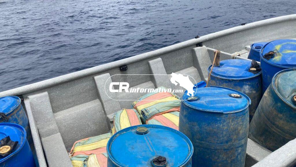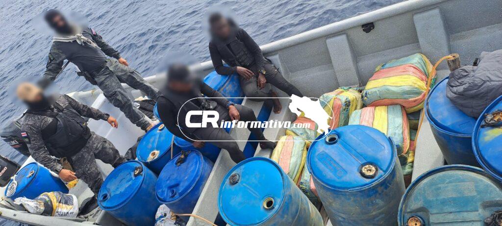 El cargamento fue recuperado por los guardacostas costarricenses, los cuales llevaron hasta Golfito, la tarde del pasado jueves, la embarcación capturada, la droga y los detenidos, quienes iban a bordo de una lancha de 32 pies de largo, sin nombre, sin bandera y sin matrícula, propulsada por dos motores de 250 caballos de fuerza cada uno.