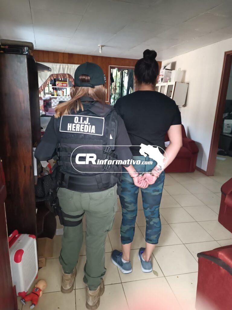 Agentes del Organismo de Investigación Judicial (OIJ), destacados en la Delegación Regional de Heredia detuvieron este martes a una mujer de 30 años, a quien se le vincula como sospechosa de Hurto.
