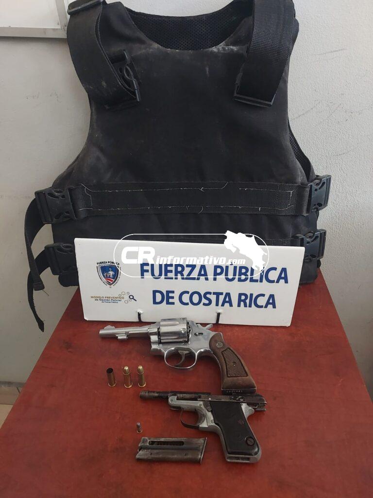 Como parte de los operativos que realiza la Fuerza Pública en la provincia de Puntarenas con el fin de reducir los delitos contra la propiedad y los homicidios, se logró la detención de dos sujetos que figuran como sospechosos de disparar en vía pública.