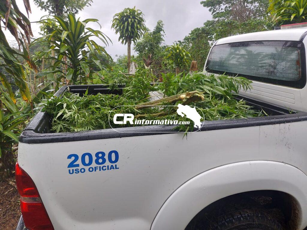 La Fuerza Pública de Costa Rica localizó y destruyó, en Fila Naranjo, distrito de Pittier, un sembradío con 290 plantas de marihuana, alguna de las cuales contaban con alturas cercanas a los 2 metros.