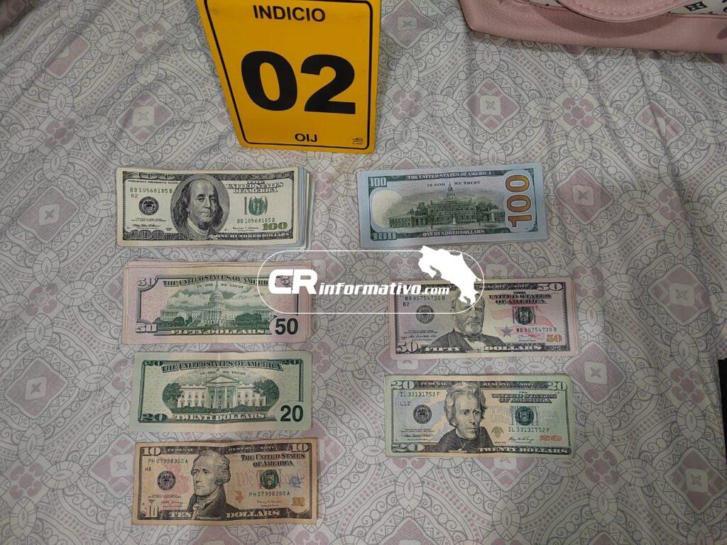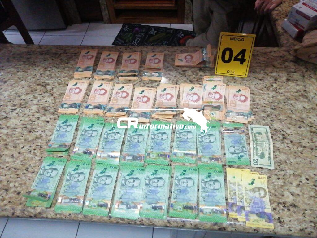aproximado a los 18 mil dólares y 4 millones de colones en efectivo, así como los vehículos de uso personal de los sospechosos, ya que en aparentemente estos fueron adquiridos con dinero proveniente del desarrollo de la mencionada actividad ilícita. Finalmente, los detenidos quedarán con un informe a las órdenes del Ministerio Público, para que se les determines su situación Jurídica.