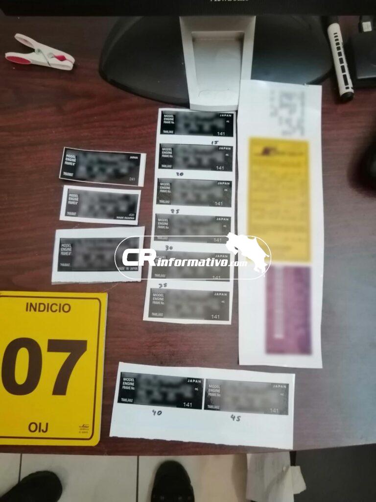 Hasta el momento se ha decomisado, carrocería con alteración de señas y marcas, varios juegos de placas metálicas con denuncia por robo, etiquetas falsas con información de vehículos, joyas, un