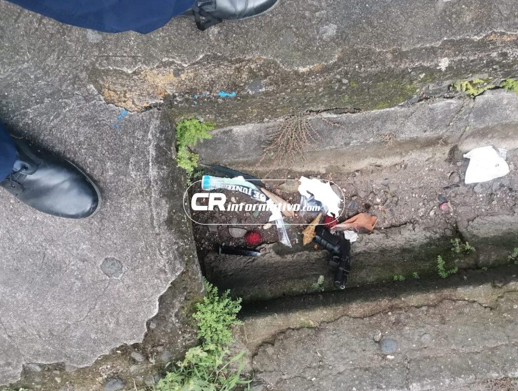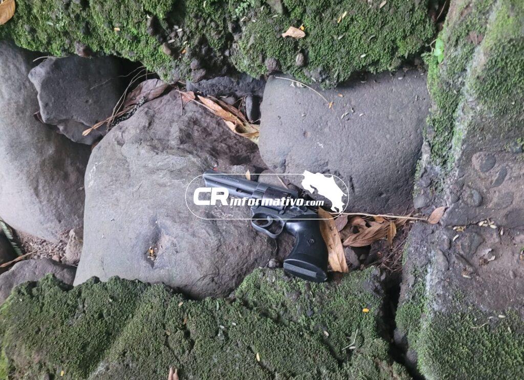 Los oficiales de la unidad 4409 solicitaron refuerzo y cuando esté llegó al lugar de los hechos, realizaron un seguimiento a los sujetos, lo que permitió ubicar un arma a la orilla del río Cañas, así como a un sospechoso, quien fue detenido de inmediato.