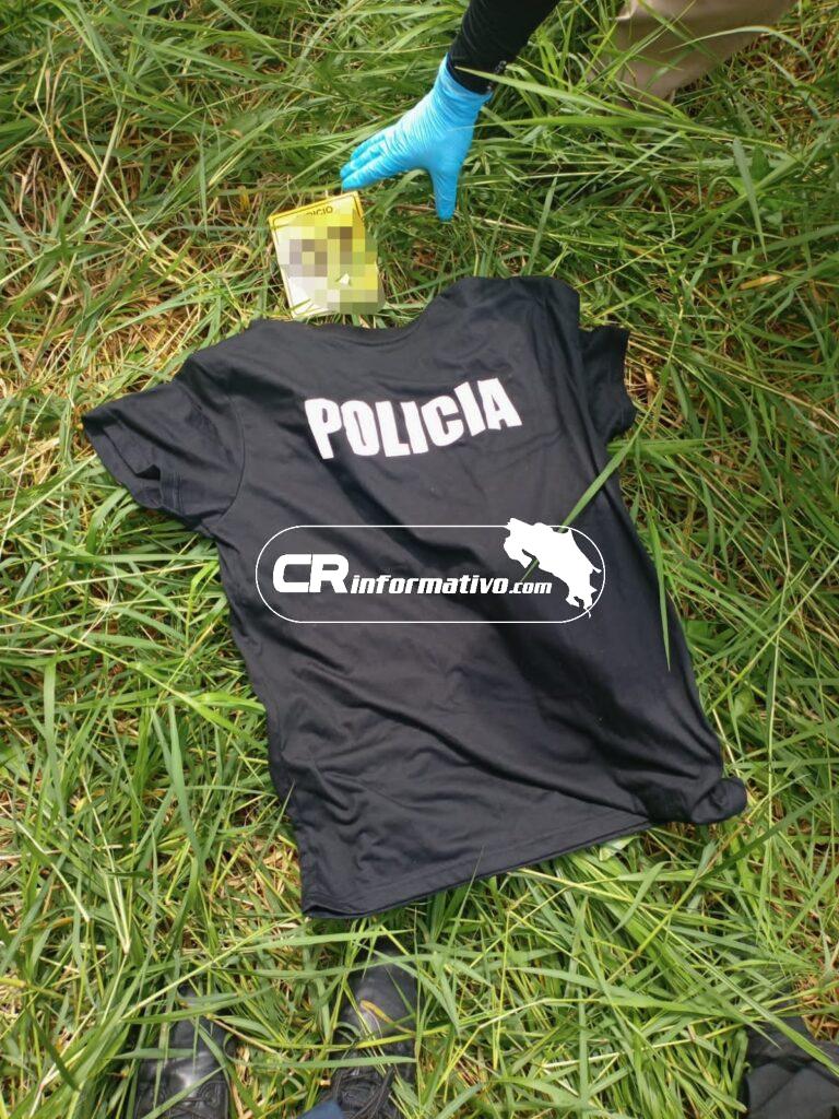 La escena quedó a cargo de agentes del Organismo de Investigación Judicial (OIJ), quienes levantaron varios indicios, entre ellos, un vehículo donde se presume viajaban los sospechosos, dos armas de fuego, un radio de comunicación, indumentaria con logos policiales, camisas, pantalones y un inhibidor de señal.