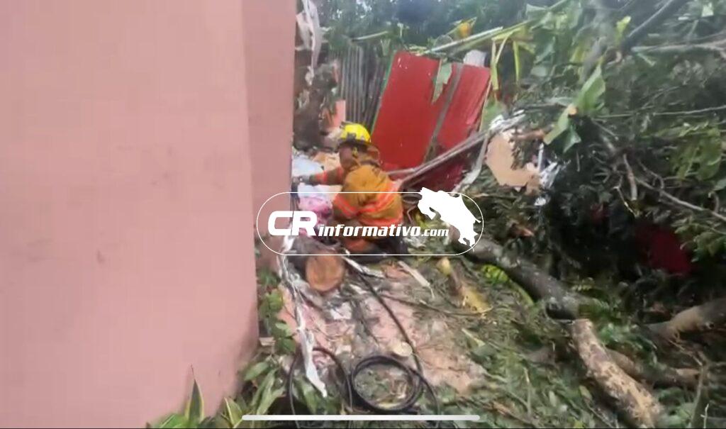 Al llegar al lugar, los socorristas se encontraron con una escena devastadora: un árbol de gran tamaño se había derrumbado sobre una vivienda, aplastandola por completo.
